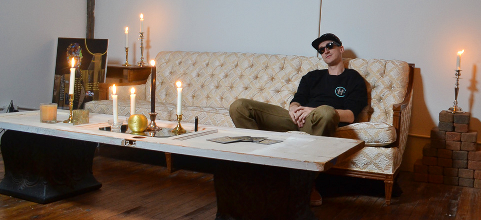 Crammed into a small stall amongst a catacomb of artist spaces off of Monroe St. in the loop is Prob’s work. As he describes different tracks from the latest installment of The Recipe, he shows off his original visual components.